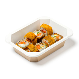 Контейнер для еды прямоугольный 800мл 226/180х145/95х50мм крафт/белый бумажный под запайку ламинированный без крышки по 50 шт/уп (400 шт/кор)