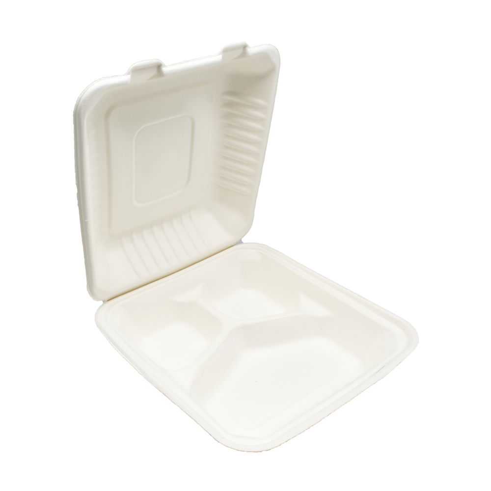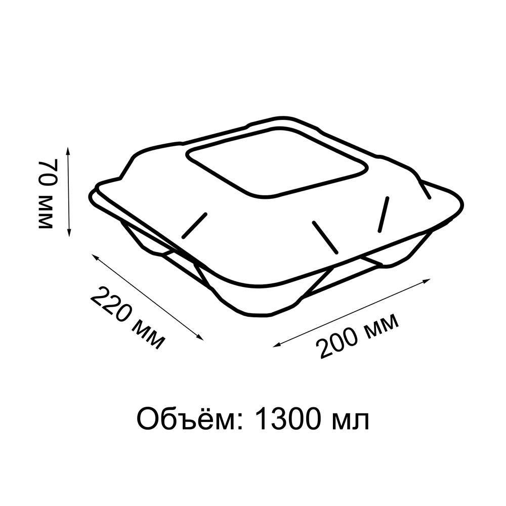 Контейнер биоразлагаемый ракушка с 3 секциями / делениями 1300мл 200×220×70мм сахарный тростник белый квадратный с откидной крышкой усиленный одноразовый (50)