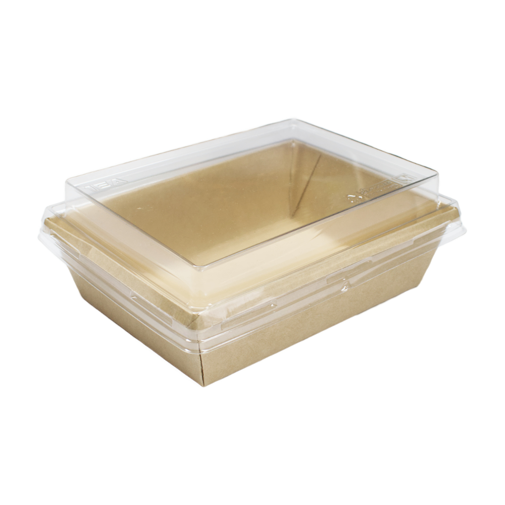 Салатник ланч бокс 500 мл 160х120х65 мм бумага/картон крафт прямоугольный со съёмной прозрачной полукупольной крышкой одноразовый (50)