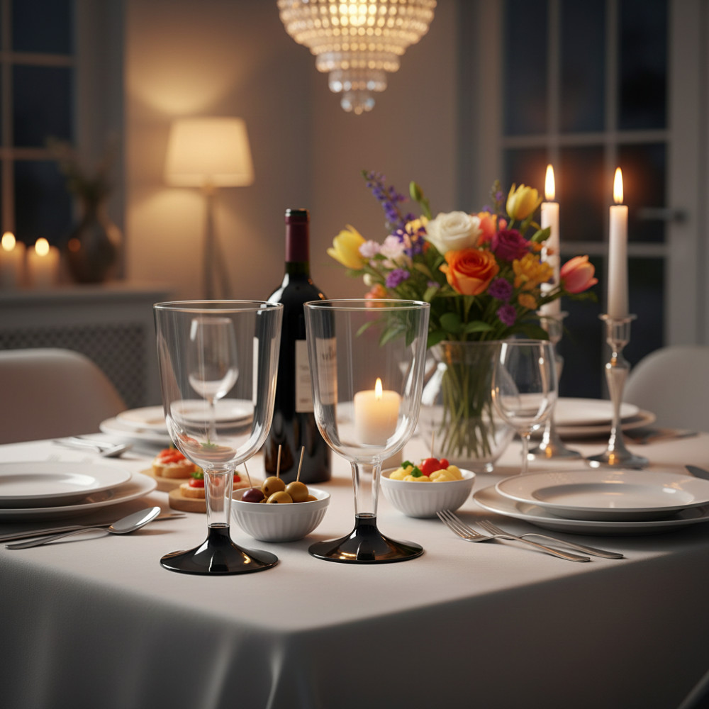 Одноразовые фужеры и бокалы имеют стильный дизайн, который не уступает стеклянным аналогам. Они прекрасно подойдут для сервировки стола на любом мероприятии — от романтического ужина до масштабного фуршета. Пластиковая посуда для праздника не только удобна, но и практична, так как легко утилизируется после использования.