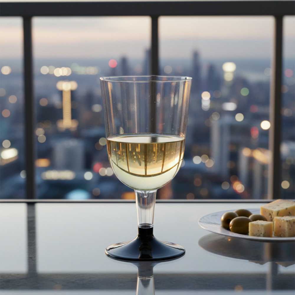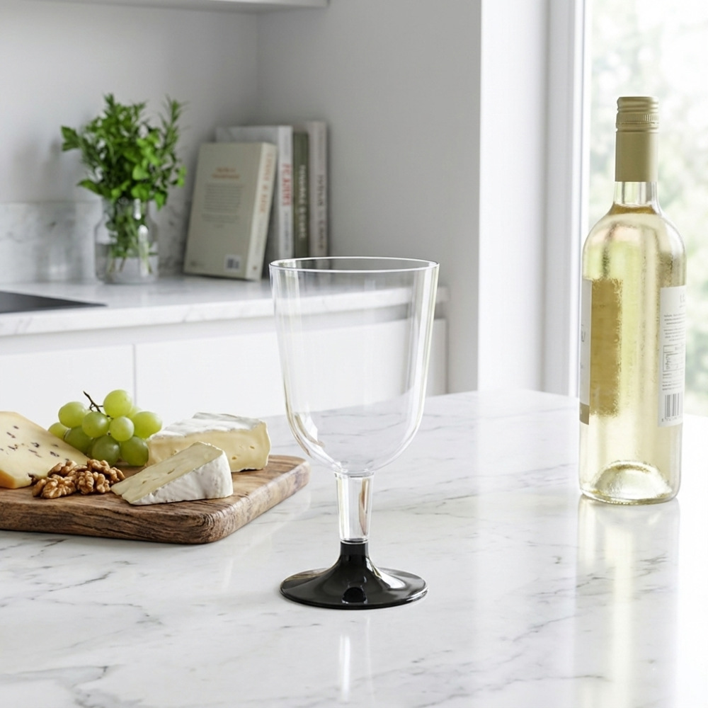 Если вы ищете идеальное решение для вашего праздника или фуршета, обратите внимание на одноразовый бокал (фужер) для вина «Чаша» объёмом 200 мл с низкой чёрной ножкой.