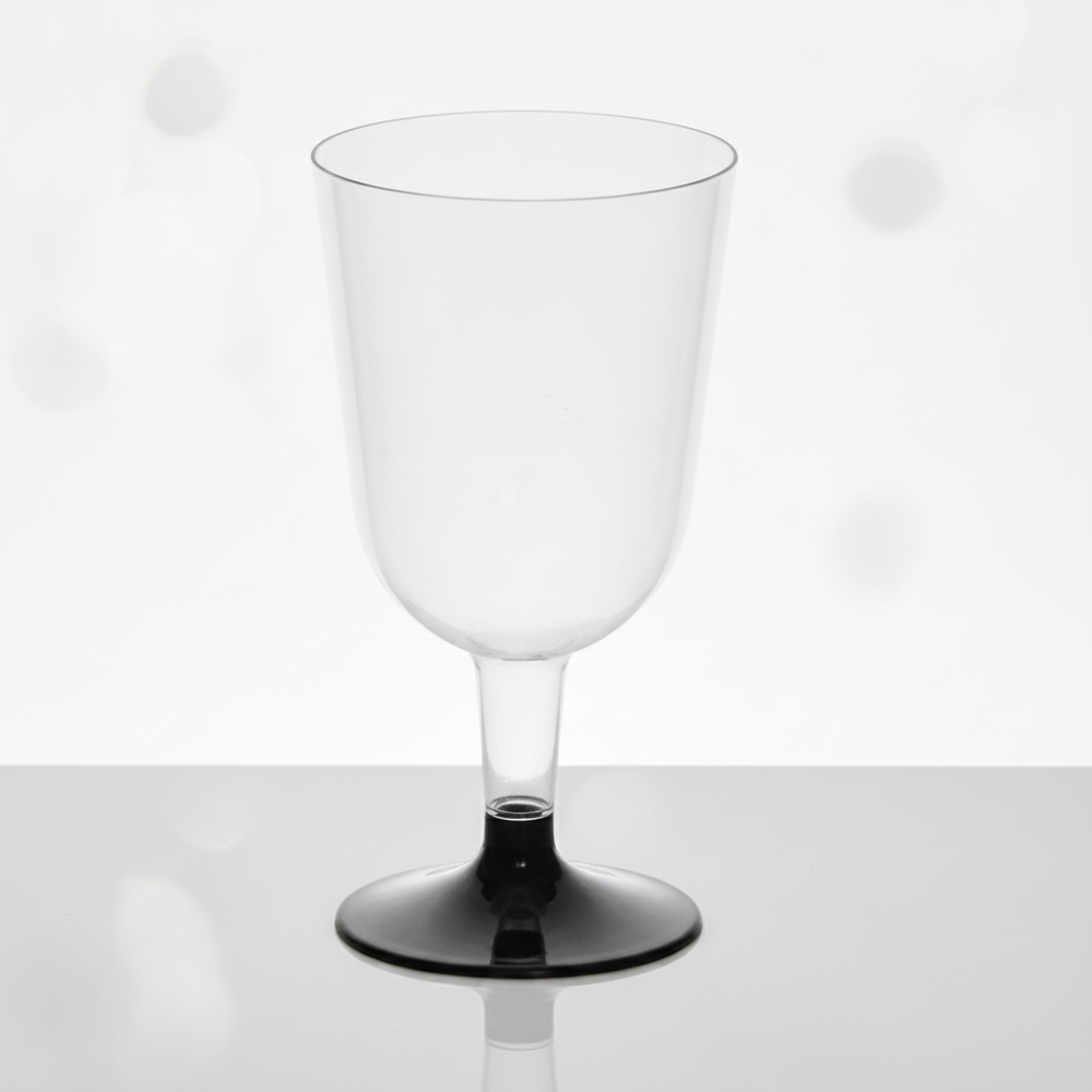 Бокал для вина «Чаша» 200мл 70х130мм пластиковый прозрачный с низкой чёрной ножкой по 6 шт/уп