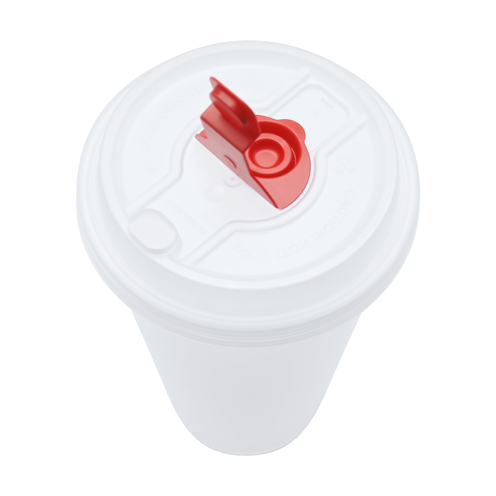 Крышка для бумажного стакана d90мм белая пластиковая с боковым отверстием круглая по 100 шт/уп (1000 шт/кор)