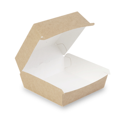 Бургер бокс бумажный квадратный 1130мл 123/142×123/132×70мм крафт/белый с купольной крышкой по 240 шт/кор