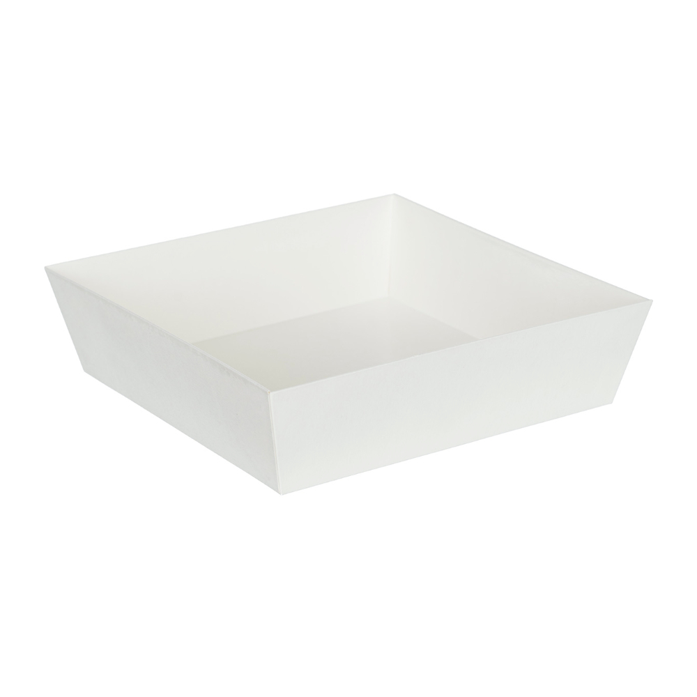 Контейнер для еды квадратный 450мл 120/100×120/100×35/65мм белый бумажный ламинированный с прозрачной купольной крышкой по 600 шт/кор