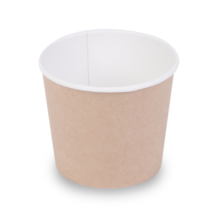 Супница бумажная круглая 435мл крафт/белая с пластиковой плоской крышкой d100мм 100/89×95мм по 30 шт/уп (600 шт/кор)
