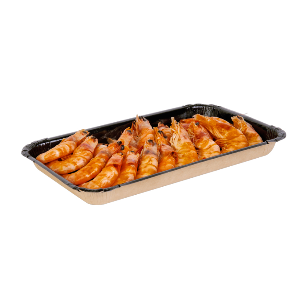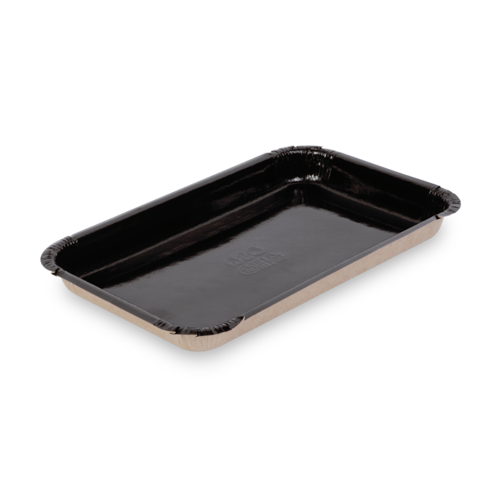 Подложка пищевая бумажная прямоугольная крафт/чёрная ламинированная низкая 225/200×135/110×20мм по 50 шт/уп (850 шт/кор)