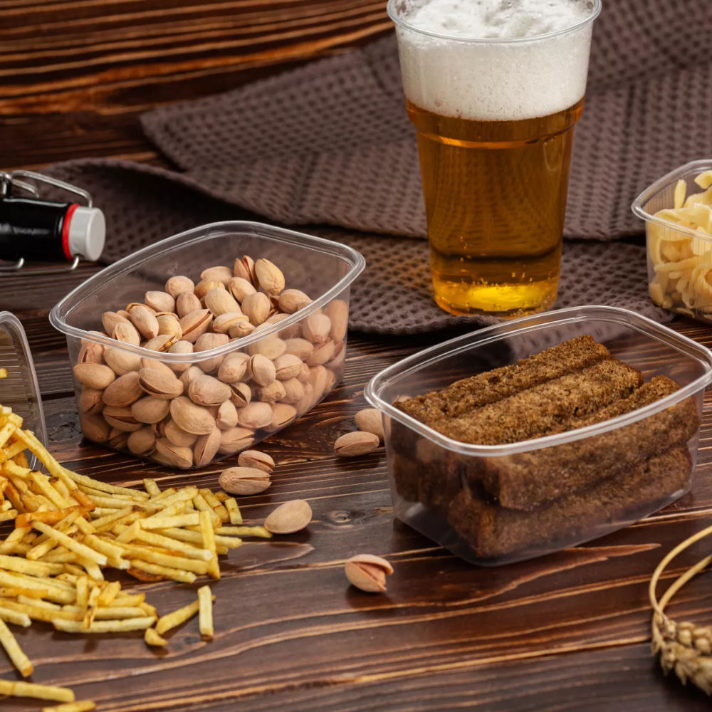 Универсальный прозрачный пластиковый контейнер 500 мл с прозрачной плоской крышкой выгодно позиционирует вашу продукцию для клиентов. Пластиковый бокс для еды надёжно удерживает жир и влагу. Подходит для разогрева в микроволновой печи. Избавляет от необходимости использования посуды. Идеально подходит для доставки и презентации пищевых продуктов. Максимально простая конструкция не требует никакой сборки.