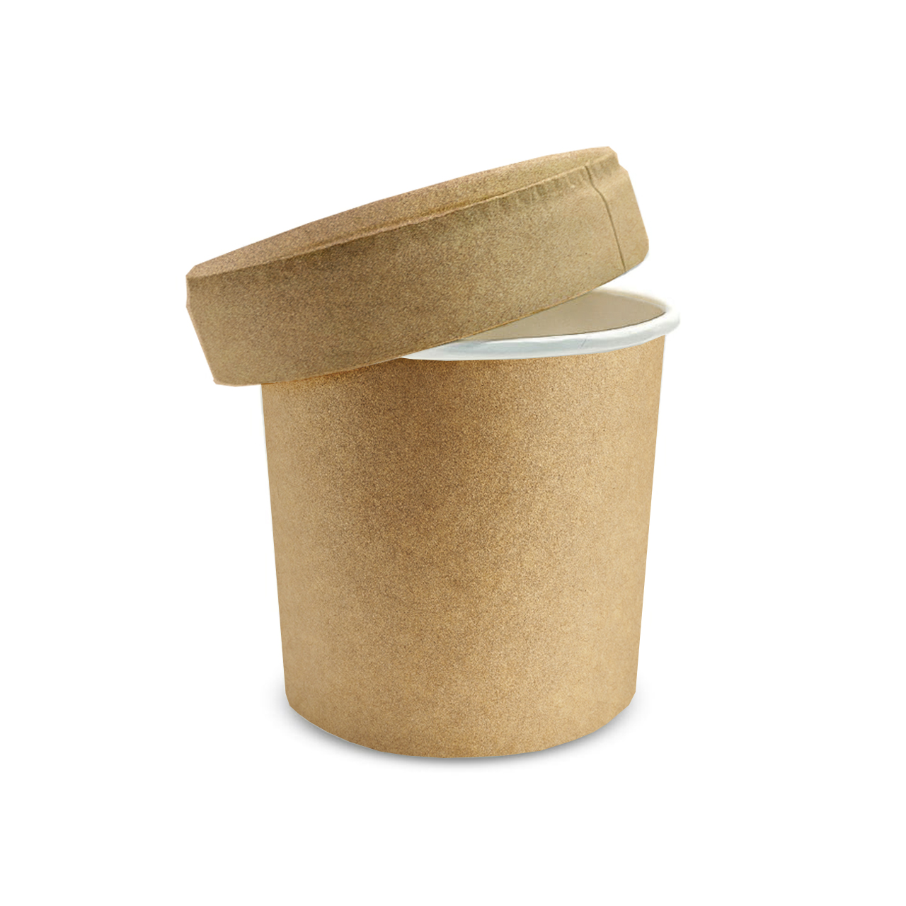 Контейнер стакан для мороженого и десертов 510мл d98мм 98/74х103мм бумага/картон крафт/белый круглый со съёмной бумажной крышкой герметичный одноразовый (1500)
