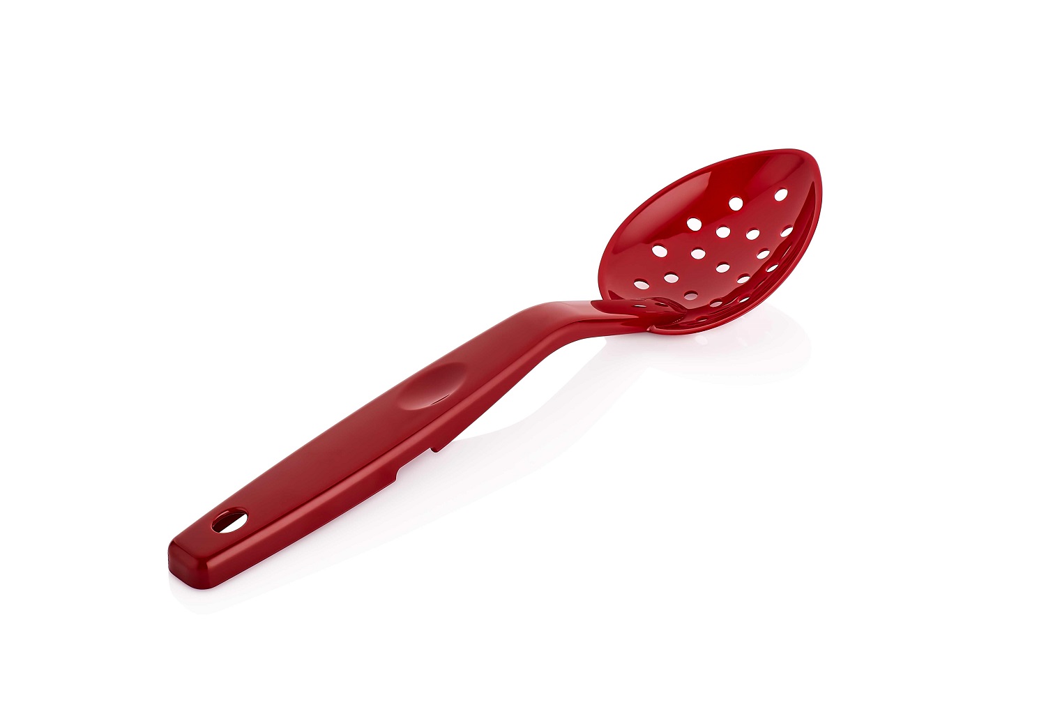 Ложка гарнирная 295мм красная из поликарбоната перфорированная по 48 шт/уп