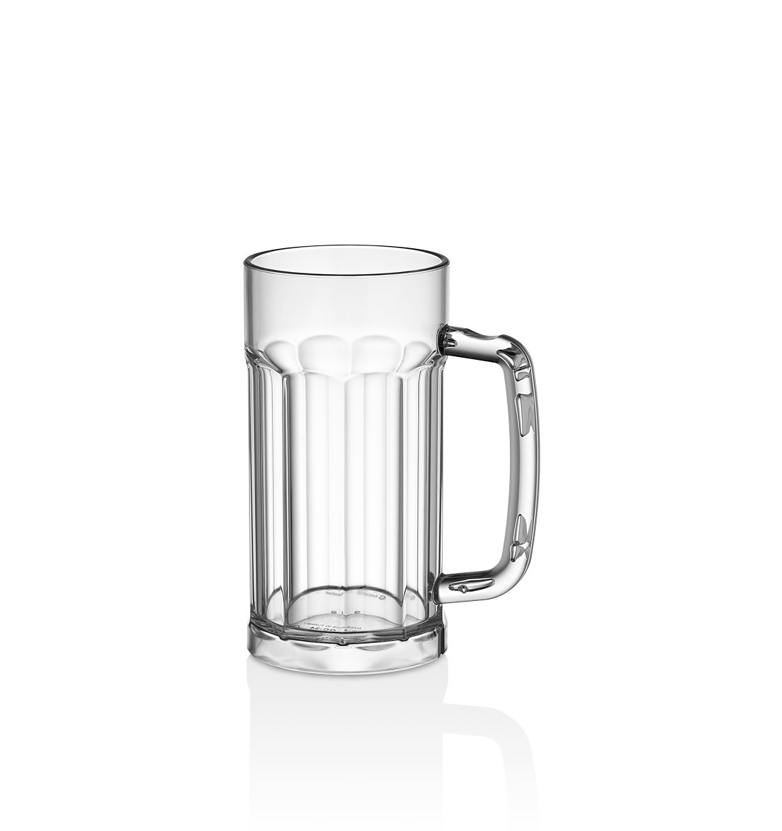 Кружка пивная 580мл d80мм h160мм прозрачная круглая с ручкой из поликарбоната по 50 шт/уп