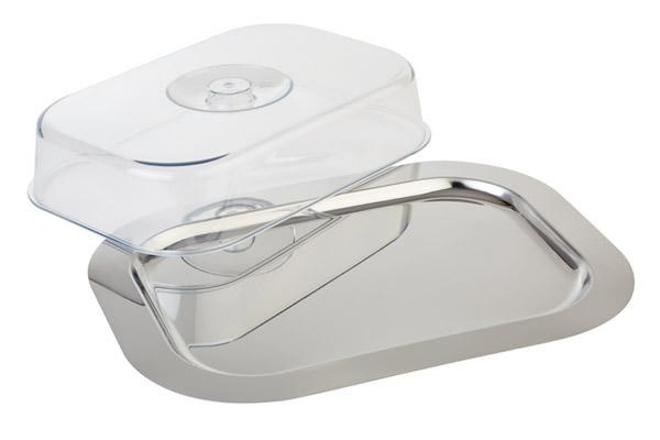 Поднос для подачи 30×15.5см с пластиковой крышкой h10.5мм прямоугольный металлический по 1 шт/уп