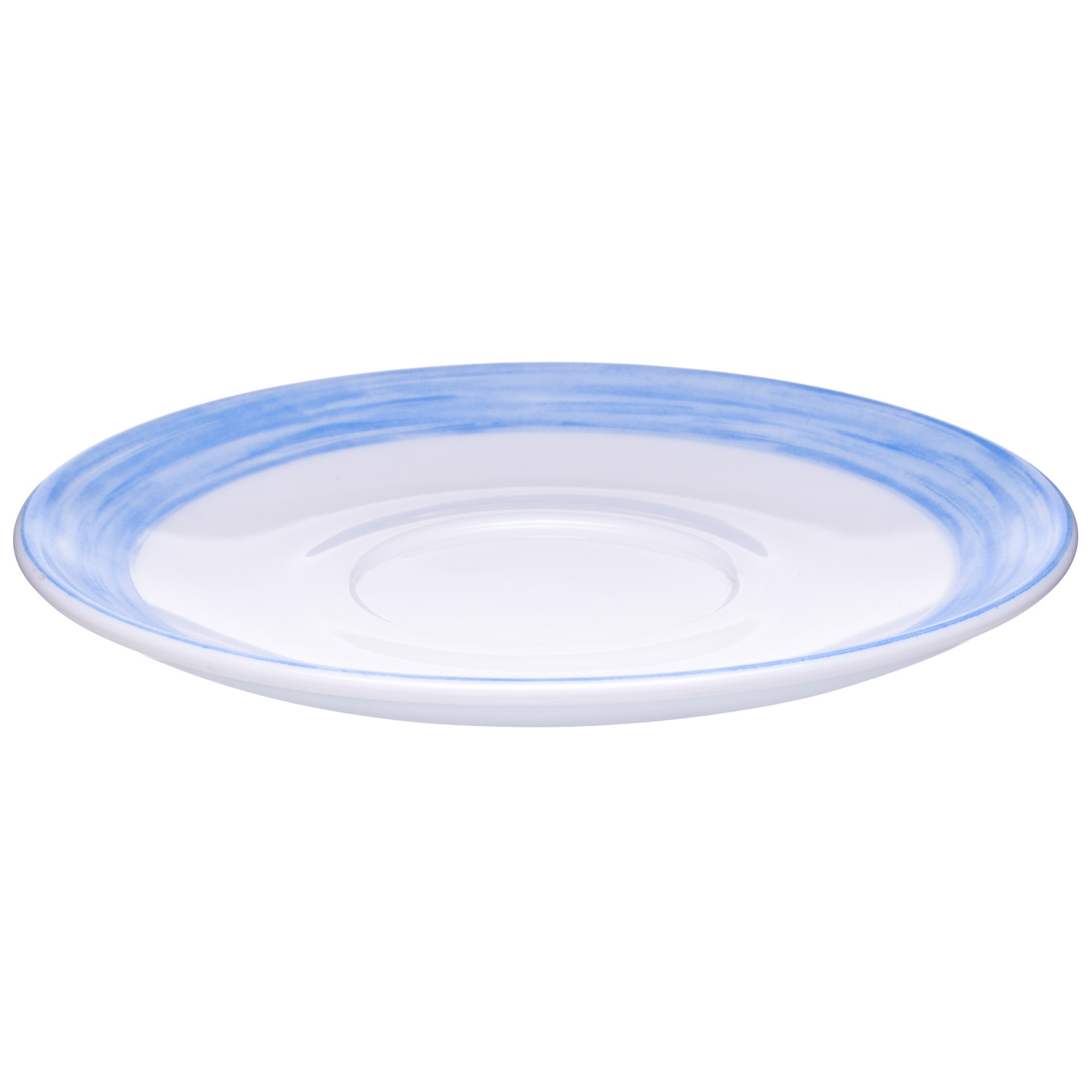 Блюдце круглое «Brush» d140мм белое голубой край из опалового стекла по 6 шт/уп