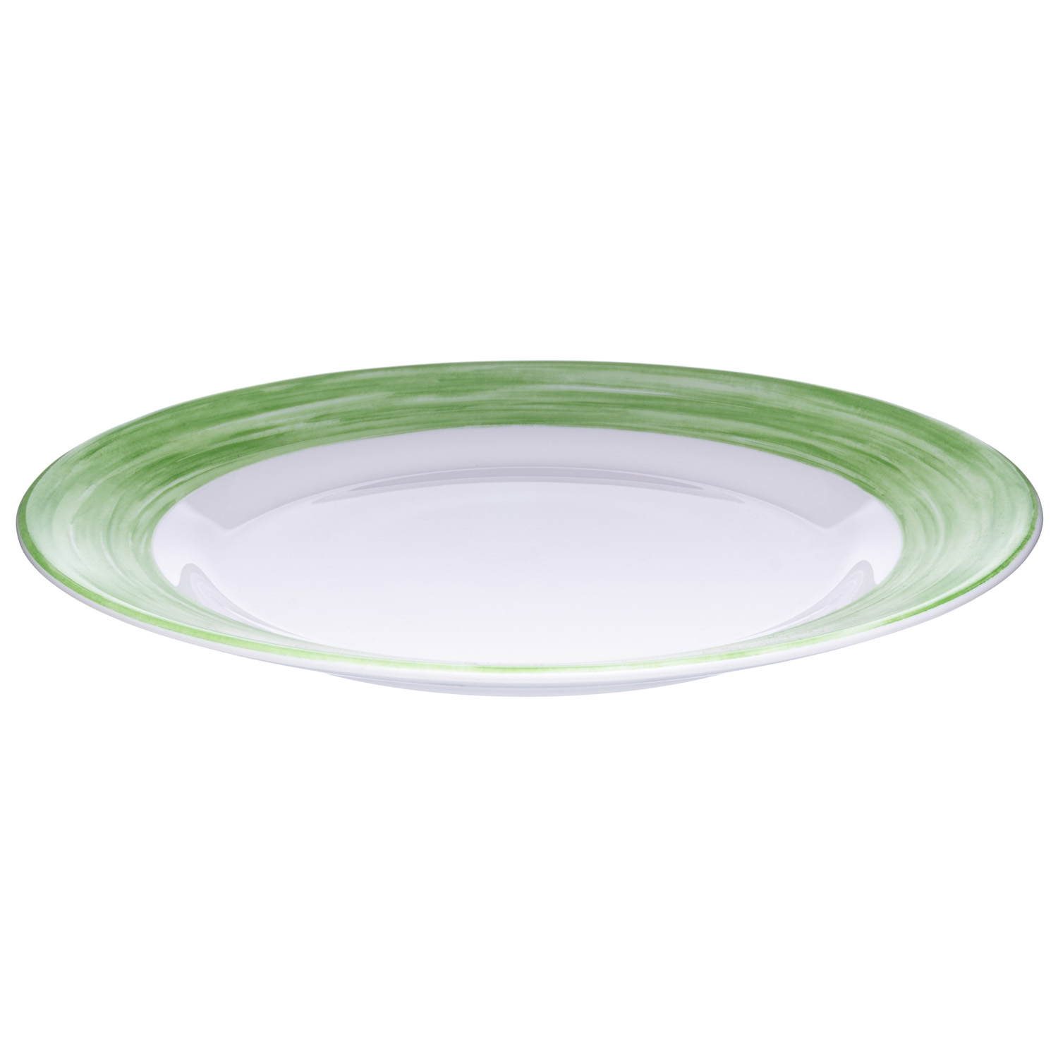 Тарелка для еды круглая «Brush» d254мм белая зелёный край из опалового стекла по 6 шт/уп