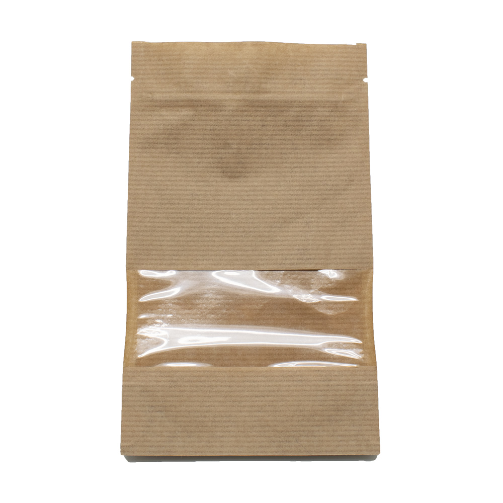 Пакет дойпак бумажный крафт 110х185 мм с окном 40 мм и замком зиплок по 500 шт/кор
