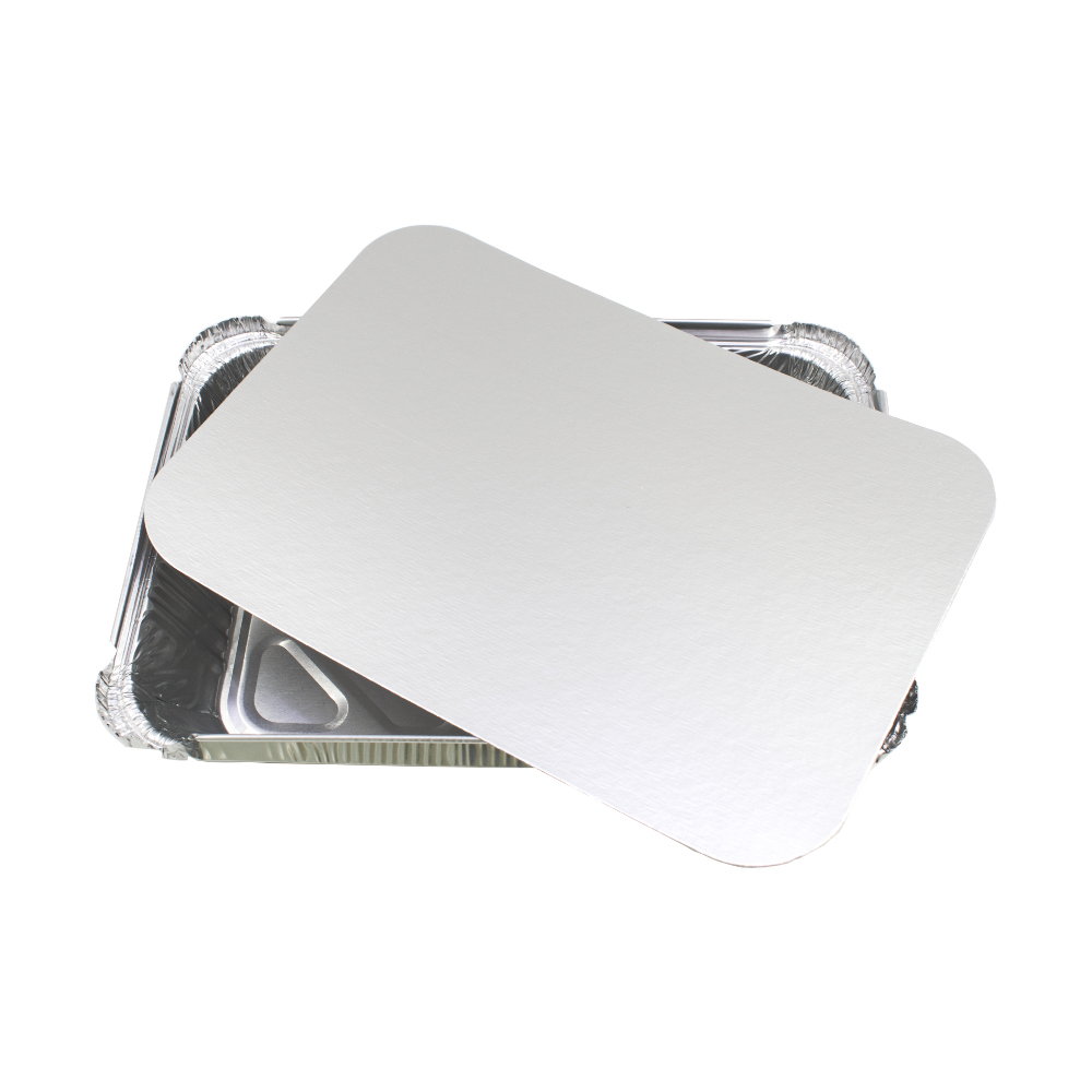 Крышка для фольгированной формы 960 мл с L-краем изготовлена из плотного не ламинированного картона и алюминиевой фольги. Алюминиевая форма накрывается крышкой фольгированной стороной внутрь. Использование крышки защищает от попадания посторонних предметов и пыли, дольше сохраняет пищу горячей или холодной. Поставляется без формы. Не рекомендуется использование в микроволновой печи.