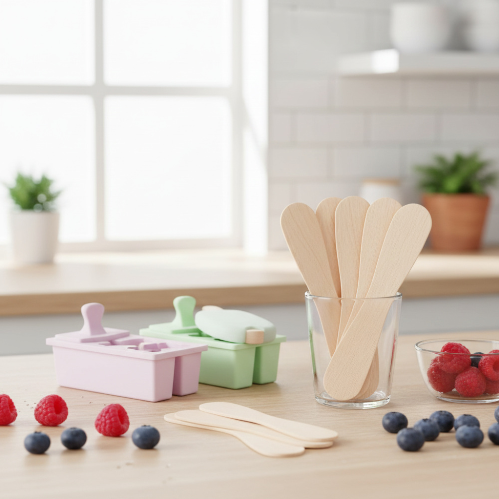 Одной из форм подачи мороженного является эскимо на палочке, для которого используются специальные палочки из дерева. Как правило, деревянные палочки для мороженного делают из светлого дерева с отсутствием запаха. Они отличаются прочностью и эстетическим видом. Фигурная палочка для мороженого длиной 94 мм в основном используется вместе с формами для мороженого. Она имеет гладкую поверхность и очень удобна в применении. Изготовлена из экологически чистого материала – древесины берёзы. Безопасна для человека и окружающей среды. Каждая палочка помещена в индивидуальную упаковку, что обеспечивает абсолютную стерильность и чистоту.