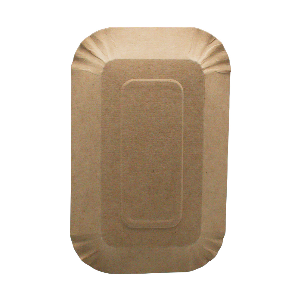 Тарелка подложка столовая обеденная биоразлагаемая 170х110х10мм бумага белая/крафт прямоугольная плоская с мелованием одноразовая (100/1800)
