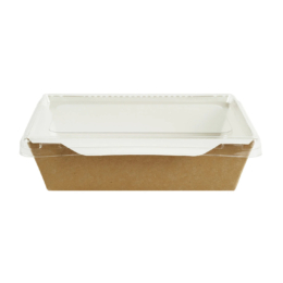 Контейнер для еды прямоугольный 500мл полный крафт бумажный с прозрачной полукупольной крышкой 160х120х65мм по 50 шт/уп